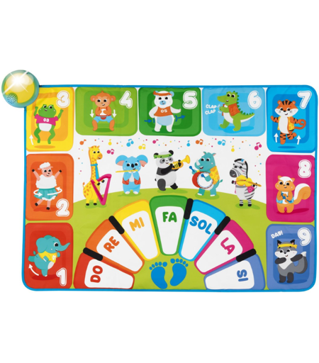 Tapete de jogo eletrónico com notas musicais, sons de animais, instrumentos e cores. Idade recomendada, dos 2 aos 5 anos. ...