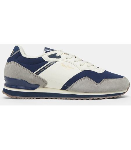 Ténis London College da Pepe Jeans, estilo retro running em tons de azul e bege. Apresenta acabamentos em camurça em cinza e uma mistura de materiais. Pormenor do logótipo na lingueta e na lateral. Composição: Corpo: Pele; Têxtil;Sola: Borracha.Cuidados e manutenção: Não lavar/ secar na máquina. ...