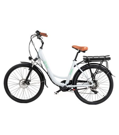 Caraterísticas Potência: 250W Autonomia: 35-40 km Bateria removível de lítio 36V/10Ah Pedalada assistida por motor elétrico Carga completa: 4-6h Rodas de 26 polegadas Desviador Shimano 6 velocidades Freio a disco dianteiro e traseiro Confortável selim tipo cidade Velocidade máxima: 25km/h Moldura de alumínio Forquilha dianteira de magnésio Luz dianteira e traseira Exibição do velocímetro e nível da bateria Carga máxima: 125 Kg ...
