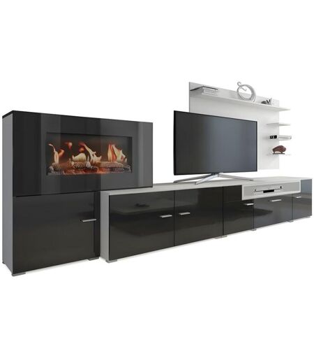 Skraut Home Mobiliário com lareira eléctrica com 5 níveis de chama, Branco Mate e Preto Brilhante, 290x45x170cm