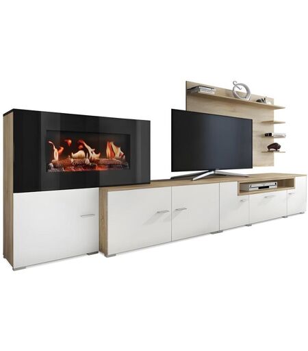 Mobiliário de sala de estar/jantar com lareira eléctrica com 5 níveis de chama, branco mate e acabamento escovado de carvalho claro, medidas: 290 x 170 x 45 cm de profundidade Medidas do conjunto da sala: 290 cm (largura) x 170 cm (altura) x 45 cm (profundidade). Tamanho da lareira: 91 cm (largura) x 56,5 cm (altura) x 32 cm (profundidade). Acabamento em melamina de qualidade, estrutura carvalho claro escovado, frentes de MDF em branca mate, a sua sala de estar será muito brilhante, ideal para qualquer estilo de sala de estar. Todas as portas têm puxadores muito discretos e elegantes. Graças à multiplicidade de compartimentos que poderá guardar, decorar o seu quarto e colocar todos os seus dispositivos electrónicos, tais como DVD, TV, estéreo, etc. A sala consiste em dois módulos base, 1 painel superior com uma prateleira e o incrível módulo base com uma lareira eléctrica. Inclui lareira eléctrica, com controlo remoto. 2 potências reguláveis de 1000w e 2000W, iluminação patenteada com led com 5 efeitos de chama, temporizador incorporado. Fantástico conjunto de mobiliário para a sala de estar, inclui a incrível inovação de ter uma lareira eléctrica, pode desfrutar da sensação incomparável de acompanhar as suas noites com a companhia de uma lareira na sua sala de estar. Sala de jantar completa esteticamente muito elegante e marcante, não poderá resistir a renovar a sua sala de estar. Se quiser convencer-se de que esta é a sua sala de estar, utilize o seguinte link: https://youtu.be/Us3p2zNWpHs Kit de montagem fácil de mobiliário, entregue com instruções de montagem e as ferramentas correspondentes para uma montagem óptima.Características Cor (nuance): Natural claro Material: Painéis e derivados de madeira Tipo de aglomerado: Painel de partículas Acabamento: Mate Com leds Tipo de instalação: Para pousar Gama: Good for Planet Critérios de eco-responsabilidade: Fabricado na Europa Requer montagemDimensões Comprimento: 290 cm Altura: 170 cm Profundidade: 45 cm ...