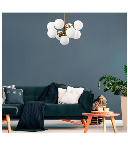 Vente-unique Candeeiro de teto em metal com 9 globos de A. 80 cm cor branco e dourado - MUDONI