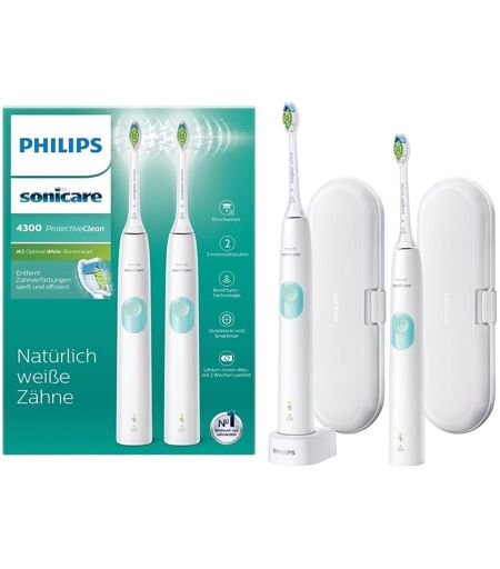 Pack 2x Escovas de Dentes Elétrica Sonicare ProtectiveClean 4300 - PHILIPS