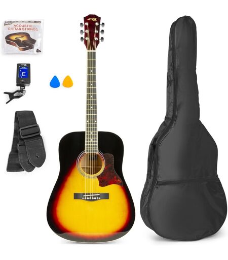 O SoloJam Acoustic Guitar Pack é o pacote inicial perfeito para quem deseja entrar no mundo das violas! O corpo deste instrumento é projetado no estilo clássico de guitarra encouraçado que lhe confere um som e presença excelentes. Este grande violão de cordas de aço é feito com os melhores materiais e mão de obra possível a um preço muito acessível! Este pacote também inclui cordas sobressalentes, alça de guitarra, afinador digital, palhetas e uma bolsa de nylon para transportar sua guitarra para praticar ou apresentações. Caraterísticas - Guitarra acústica de faroeste em tamanho real - Forma do corpo: Dreadnought - Punho confortável e cordas de aço - Corpo de Basswood - Escala de jacarandá - Adequado para musicos de todos os níveis - Cor: Castanho - Peso (kg) 3,5 - Dimensões (C x L x A) 1050 x 305 x 145mm O kit SoloJam também inclui: - Capa flexível durável - Picks (2x) - Sintonizador digital clipado - Cordas sobressalentes - Cinta de guitarra ...