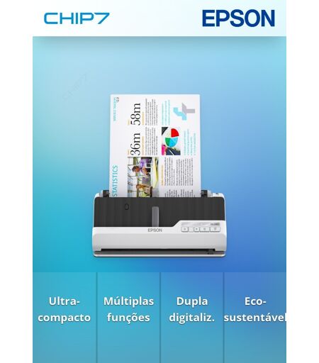 Ultracompacto Quando o digitalizador está na posição de percurso em U, o papel pode ser digitalizado sem que o dispositivo ocupe mais espaço, tornando-o na escolha perfeita quando o espaço é primordial. Versátil O DS-C490 é extremamente versátil, sendo compatível com envelopes e cartões PL até papel comprido e A3 (perfurado). Pode inclusivamente digitalizar passaportes e folhetos até 5 mm de espessura, captando a zona MRZ do passaporte e guardando em formatos compatíveis com Excel. O DS-C490 também inclui uma série de funcionalidades de melhoramento, que lhe permitem melhorar a nitidez do texto, bem como corrigir dobras nas extremidades, rasgões, sombras nas margens e remover furos. O sensor ultrassónico incorporado elimina a alimentação dupla, garantindo que todas as páginas são capturadas. Digitalize também para as aplicações Microsoft Word, Excel, PowerPoint. Compatível com Windows, Mac e Chromebook. Dois em um O seletor permite-lhe alternar facilmente entre percurso direto e o percurso em U, mesmo durante o funcionamento, permitindo-lhe criar um único PDF. Quando o digitalizador está no modo em U, o papel pode ser digitalizado sem que o dispositivo ocupe mais espaço, tornando-o na escolha perfeita quando o espaço é primordial. Menor impacto ambiental O digitalizador é fabricado com até 30% de plástico reciclado*. Além disso, com um consumo energético de apenas 3,3 W no modo pronto e 1,0 W no modo de suspensão, também poupará energia. ...