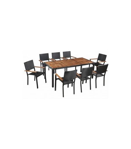 Vidaxl Set Jardim Sala De Jantar 9 Pcs Ratão Sintético E Madeira De Acacia Preto