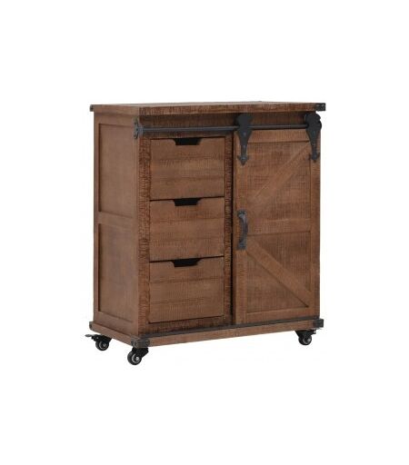 Este armário de arrumação clássico será um complemento decorativo para a sua casa. Também pode ser utilizado como armário baixo ou aparador. Este armário estável e durável é feito em madeira maciça de abeto, que exala um charme vintage e lhe confere características rústicas. O armário possui amplo espaço para manter vários itens perfeitamente organizados. O design exclusivo do trilho deslizante ajuda a abrir e fechar a porta facilmente e também traz um estilo vintage e industrial ao gabinete. O armário de madeira foi projetado com quatro rodas flexíveis que se movimentam pela casa. Este gabinete é fácil de montar. ...