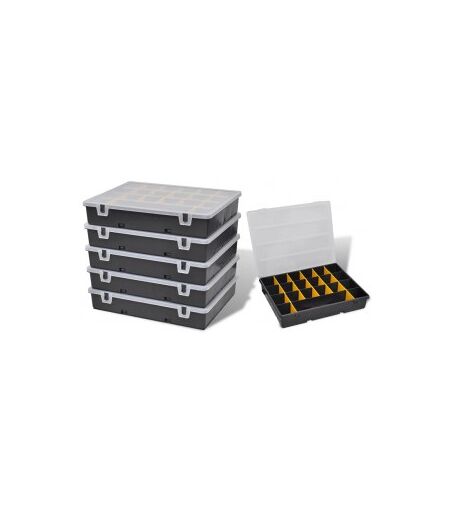 Este conjunto robusto de caixa de ferramentas de plástico, incluindo 6 unidades, é ideal para o armazenamento de ferramentas como porcas, parafusos, parafusos e outras peças pequenas. Caixa de ferramentas com 21 compartimentos, que, sem dúvida o conforto de uso no futuro. Feito de polipropileno de qualidade, a caixa possui alta estabilidade térmica, resistência à corrosão e é muito durável para anos de uso. Obrigado à alça incluída, a caixa de ferramentas é portátil. Nosso conjunto da caixa de ferramentas é, sem dúvida, uma grande ajuda para organizar suas ferramentas. ...