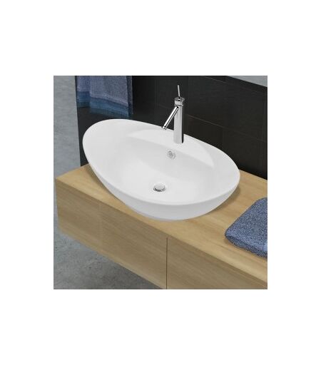 Vidaxl Lava-louças Cerâmicas Ovalizadas Com Fosso De Torneira E Recheio