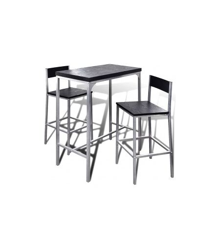 Este elegante e moderno conjunto de mesa alta e bancos de cozinha combina estilo e funcionalidade. As linhas simples e o design compacto tornam-no ideal para apartamentos ou outros locais como cafés, pubs ou bares. Os bancos podem ser colocados debaixo da mesa quando não estiverem em uso para economizar mais espaço. Este conjunto de mesa alta para café da manhã é feito em MDF de alta qualidade na cor preta, que é fácil de limpar e cabe em qualquer decoração. A estrutura de aço de qualidade torna o conjunto muito estável e durável. A montagem é bastante fácil. A entrega inclui 1 mesa alta e 2 bancos. ...