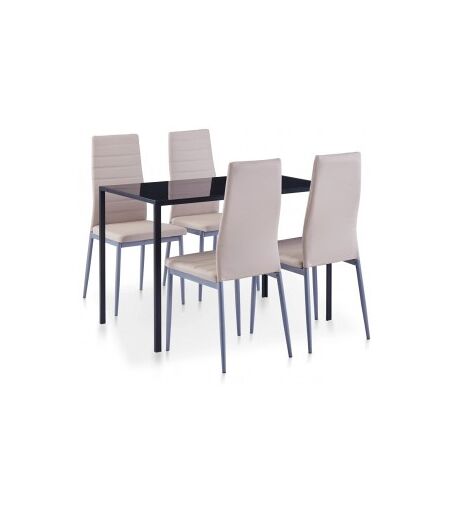 Este conjunto de mesas de jantar, composto por 5 peças, tem um design elegante e moderno e é perfeito para aqueles que procuram adicionar um toque de estilo ao seu interior. A mesa é feita de vidro temperado de alta resistência que é fácil de limpar. Cada cadeira é revestida com couro artificial de alta qualidade. A poltrona flexível é muito confortável. A entrega inclui 1 mesa e 4 cadeiras. ...