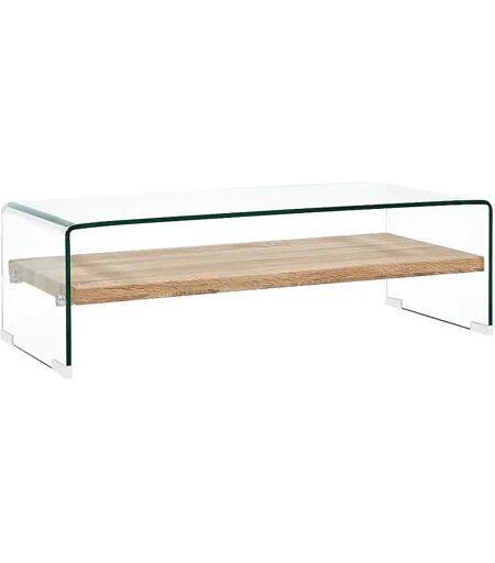 Dê um toque do charme contemporâneo ao seu interior com esta mesa de centro estilo minimalista e intemporal! A mesa de centro é feita de MDF e vidro de segurança temperado, mais seguro e mais forte do que o vidro normal. Graças à sua prateleira integrada, esta mesa de centro prática ajudará a manter o seu espaço livre de desarrumação, tornando-a perfeita para livros, revistas e vários outros artigos pequenos que gostaria de manter ao seu alcance. Adicionalmente, a construção robusta permite que a mesa seja extremamente durável. Relaxe e desfrute do tempo com a sua família e amigos à volta desta original mesa de centro!Cor: claro e carvalhoMaterial: vidro temperado seguro e MDFDimensões: 98 x 45 x 31 cm (C x L x A)Espessura do vidro: 8 mmCom uma prateleiraCaracterísticas Cor (nuance): Transparente Material: VidroDimensões Comprimento: 98 cm Altura: 31 cm Profundidade: 45 cm ...