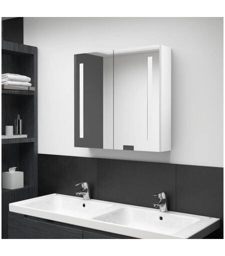 vidaxl Armário espelhado casa de banho LED 62x14x60cm branco brilhante