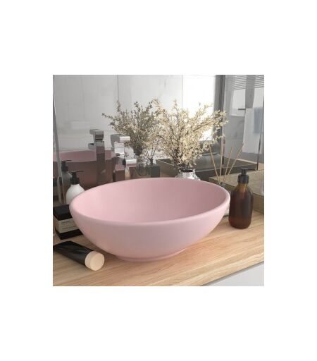 Vidaxl Lavabo De Luxo Cerâmica Oval Rosa Mate 40x33 Cm