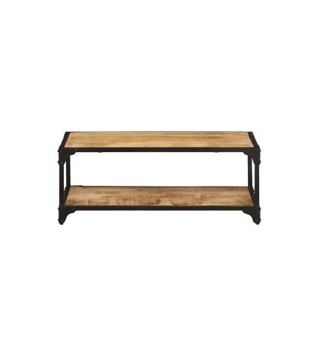 Esta mesa de centro de madeira de estilo vintage é um complemento intemporal para a sua casa. Feita em madeira de mangueira maciça e áspera, esta mesa lateral exala um aspecto original. O artesanato requintado e os belos grãos da madeira de mangueira tornam cada peça de mobiliário única e ligeiramente diferente das outras. Graças à forte estrutura de ferro, a mesa de centro é muito estável e durável. O tampo da mesa proporciona uma superfície estável e segura onde pode colocar as suas bebidas, uma fruteira, um vaso ou outros elementos decorativos. A prateleira inferior oferece amplo espaço para guardar dispositivos multimídia, livros, revistas e outros itens que você deseja manter à mão. A mesa de centro também pode ser usada como mesa de sofá, mesa de sala, mesa lateral, etc. Nota importante: As cores variam de peça para peça, por isso cada uma das mesas de centro é única, a entrega é aleatória. ...