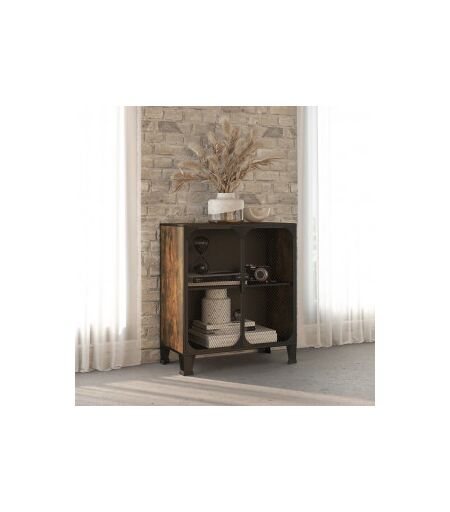 Este armário de arrumação manterá a sua casa limpa e bem organizada! Este armário de arrumação é feito de metal e MDF, o que o torna robusto e estável. Possui uma prateleira interna, que oferece amplo espaço de armazenamento para manter seus DVDs, dispositivos de mídia, livros e pequenos itens essenciais organizados e ao seu alcance. Com uma combinação de ferragens metálicas e portas de malha, este armário irá adicionar um toque industrial urbano à sua sala de estar ou quarto. Além disso, é fácil de limpar com um pano úmido. ...