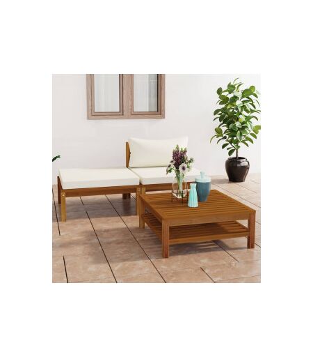 Vidaxl Mobiliário De Jardim 3 Almofadas Branco Creme Madeira De Acacia