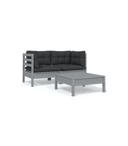 Vidaxl Jogos Móveis De Jardim 3 Pcs Almofadas Cinza Madeira De Pinho Maciço