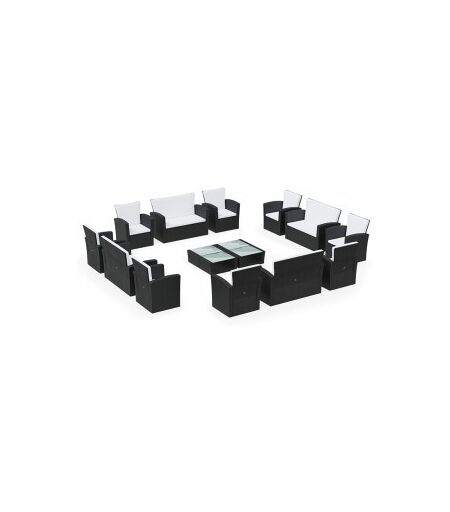 Vidaxl Set De Mobiliário De Jardim 16 Peças E Almofadas De Ratão Preto Sintético