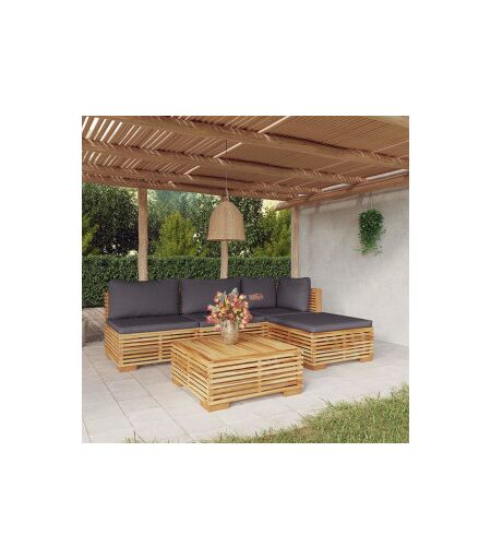Vidaxl Conjunto De Móveis De Jardim De 5 Peças E Almofadas Em Madeira Maciça De Teca