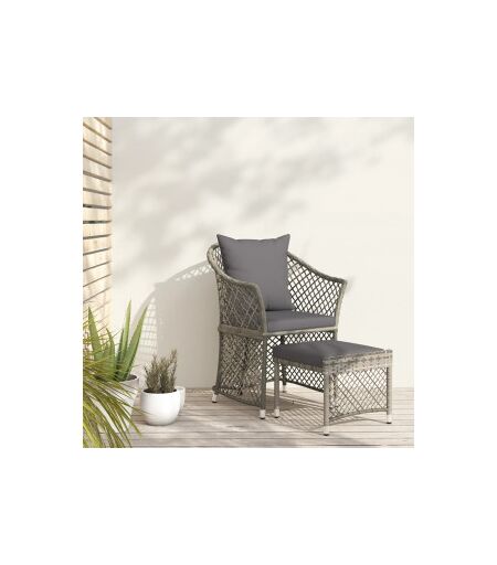 Desfrute de momentos agradáveis no espaço exterior da casa com este conjunto de mobiliário de jardim! É um complemento perfeito para o jardim e terraço e também cria uma impressão duradoura. Material durável: O rattan sintético é um material muito resistente e durável em diferentes condições climáticas. Também não requer muita manutenção.Estrutura de aço: A estrutura de aço garante a resistência e estabilidade do conjunto de espreguiçadeiras para exterior.Almofadas macias: Almofadas grossas e removíveis estão incluídas para proporcionar o máximo conforto ao sentar.Apoios de braços e encosto confortáveis: O encosto redondo e o os apoios de braços permitem que você descanse os braços e as costas confortavelmente. Banco prático: você pode relaxar e descansar os pés com o banco incluído. E você também pode colocar o banco onde quiser. Informações úteis:Para facilitar ao máximo a montagem, cada produto é entregue com um manual. Nota: Para garantir que o seu mobiliário de exterior permanece bonito, recomendamos protegê-lo com uma capa impermeável. ...