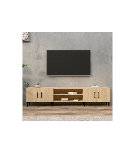 Este mobiliário de TV moderno, com um design fino e elegante, destina-se a ser um complemento decorativo e prático para a decoração da casa. Material durável: A madeira contraplacada tem uma qualidade excepcional, com uma superfície lisa e também possui força, estabilidade e resistência à umidade. Amplio espaço de armazenamento: O mobiliário da TV tem 4 compartimentos e 4 portas, que oferecem espaço de armazenamento suficiente para manter suas coisas bem organizadas e ao seu alcance. Pernas de metal: As patas de metal adicionam um estilo moderno e tranquilo à casa enquanto garantem a estabilidade. Função de exibição: A superfície resistente deste suporte de TV é o lugar perfeito para colocar plantas, fotos emolduradas e outros objetos decorativos. Informações úteis:Para facilitar a montagem, cada produto é fornecido com um manual. ...