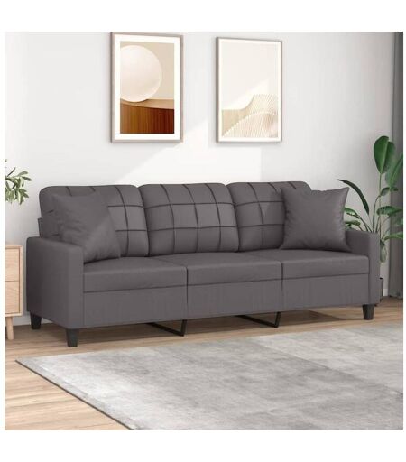 vidaxl Sofá 3 lug. c/ almofadas decorativas 180 cm couro artif. cinza