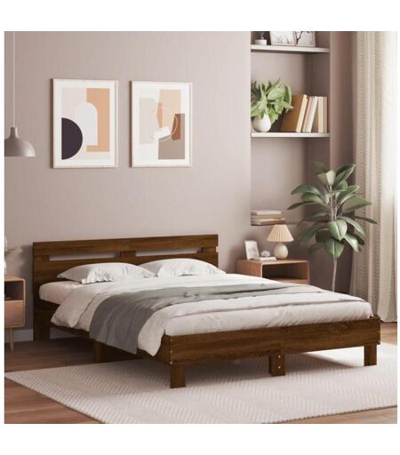 vidaxl Estrutura cama cabeceira/luzes LED 140x190 cm carvalho castanho
