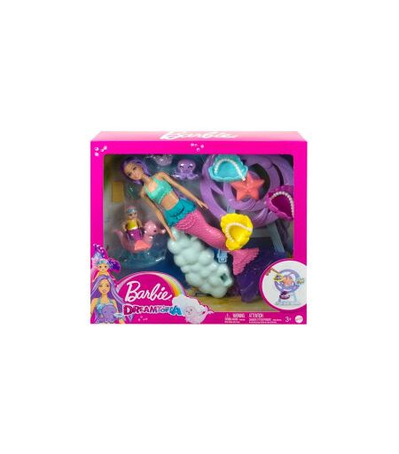 Descubra um mundo mágico de imaginação com o jogo de conto de fadas encantador Barbie. Esta linda boneca de sirene, com seu cabelo liso em cor de lavanda delicada e uma fila de impressionantes tons rosa e roxo, convida você a mergulhar em aventuras marinhas. Além disso, Barbie está pronto para cuidar de uma linda sirene bebê e seus amigos marinhos: um polvo e uma raça de selo. Com uma cama inspirada na noria, um cavalo-mar rochoso, uma garrafa e um cobertor, este conjunto é projetado para promover a criatividade e cuidado. Note que o pulso Barbie não pode nadar ou estar sozinho, e as cores e decorações podem variar. Ir para criar histórias inesquecíveis! Outros jogos e pulsos são vendidos separadamente. ...