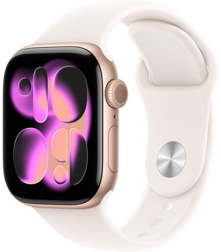 Apple Watch Series 11 GPS Caixa 42mm Alumínio Rosa‑Dourado com Bracelete Desportiva Rosa Leve S/M
