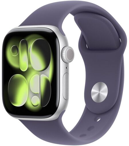 Apple Watch Series 11 GPS Caixa 42mm Alumínio Prateado com Bracelete Desportiva Roxo Névoa S/M