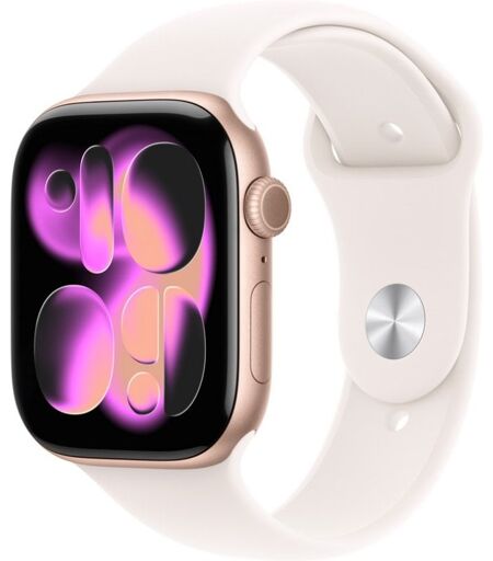 Apple Watch Series 11 GPS Caixa 46mm Alumínio Rosa‑Dourado com Bracelete Desportiva Rosa Leve M/L