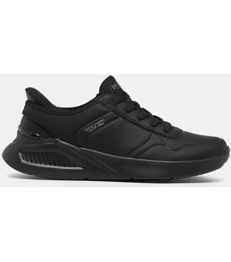 Ténis pretos Uno Lite-Floating Steps da Skechers com tecnologia Slip-ins que facilita o calçar, parte superior em pele sintética e detalhe de cordão elástico. Composição: Corpo: Sintético.Sola: Sintético.Cuidados e manutenção: Não lavar/ secar na máquina. ...