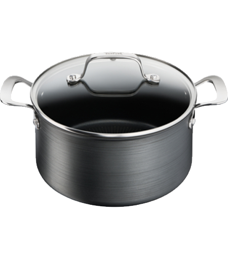 Diâmetro: 24cm Capacidade: 5lts Alumínio com revestimento interior antiaderente e reforço com cristais duros Titanium anti riscos 6x mais duradouro Novo Thermo-Signal (indicador de temperatura ideal) Resistente a riscos Base Thermo-Fusion plus extra espessa para uma distribuição do calor mais rápida e homógenea Revestimento exterior escovado antiaderente Pega elegante em aço inoxidável Tampas em vidro com sistema de libertação do vapor Base superior de indução Utilização no forno até 250ºC - exceto tampas Compatível com todas as fontes de calor, incluindo indução ...