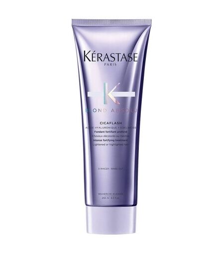 Super shot de cuidado para cabelo aclarado ou com descoloração com o desempenho restaurador de uma máscara e o acabamento leve de um condicionador. Cicaflash é um condicionador em gel leitoso opalescente com uma tonalidade suave de lavanda oferece o desempenho reparador de uma máscara com o acabamento leve de um condicionador. Repara intensivamente o cabelo sensibilizado, nutrindo a fibra. A combinação de Ácido Hialurónico com flor de Edelvaisse suaviza e fortalece instantaneamente o cabelo aclarado sensibilizado enquanto o nutre em profundidade. Ideal para todos os cabelos aclarados ou com descoloração, Cicaflash repara a fibra capilar, prevenindo a quebra e a erosão. O cabelo fica suave e hidratado sem perder a sua leveza e luminosidade. Benefícios Deixa o cabelo 16X mais resistente à quebra quando combinado com Bain Ultra-Violet. Deixa o cabelo 92% mais hidratado quando usado com Bain Lumière. Deixa o cabelo visivelmente 8x mais brilhante quando usado com Bain Lumière. Facilita o desembaraçar da raiz até às pontas. Hidrata em profundidade sem adicionar peso. Como aplicar Aplicar uma avelã de produto sobre cabelo limpo e seco com toalha. Massajar desde os comprimentos até às pontas, evitando as raízes, para assegurar um volume leve. Deixar atuar durante 2 a 3 minutos. Emulsionar e enxaguar bem. Ingredientes Ácido Hialurónico: preenche e trata os danos da fibra desde o interior para uma cutícula uniforme e nutrida em profundidade. Este ácido ultra concentrado fortalece o cabelo e previne os danos futuros. Flor de Edelvaisse: rica em antioxidantes para proteger o cabelo dos danos diários. Também suaviza e acalma as fibras do cabelo sensibilizadas.Aqua / Water, Cetearyl Alcohol, Amodimethicone, Hydroxypropyl Starch Phosphate, Isopropyl Myristate, Behentrimonium Chloride, Phenoxyethanol, Trideceth-5, Isopropyl Alcohol, Trideceth-6, Glycerin, Peg-150 Distearate, Caprylyl Glycol, Trideceth-10, Limonene, Cetrimonium Chloride, Citric Acid, Sodium Hyaluronate, Serine, Tocopherol, Acetic Acid, Ci 60730 / Ext. Violet 2, Leontopodium Alpinum Flower/Leaf Extract, Malva Sylvestris Flower Extract / Mallow Flower Extract, Sodium Benzoate, Potassium Sorbate, Parfum / Fragrance. As listas dos ingredientes que entram na composição dos produtos da marca Kérastase são atualizadas regularmente. Assim, recomendamos que consulte a lista de ingredientes na embalagem do seu produto para garantir que os ingredientes são adaptados ao seu uso pessoal. ...