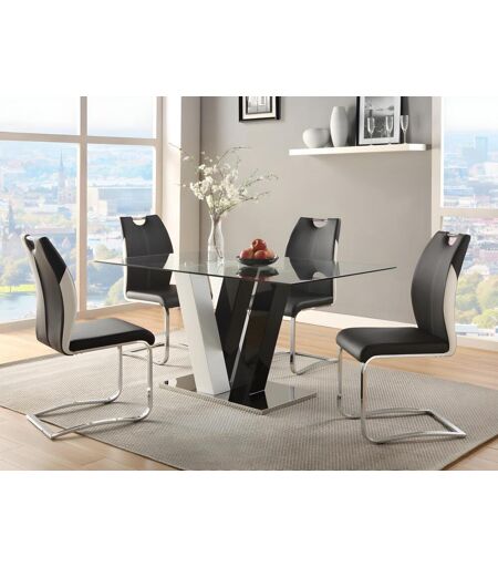 Conjunto de 4 cadeiras cantilever em Pele sintética Preto e Branco - Enchimento: Espuma de poliuretano - Pés em metal cromado - Altura do assento: 48 cm - Dimensões: C57 x L43 x A99 cm Renda-se ao estilo das cadeiras WINCH. ...