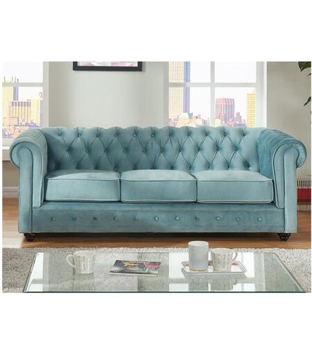 Vente-unique Sofá de 3 lugares CHESTERFIELD - Veludo Azul pastel