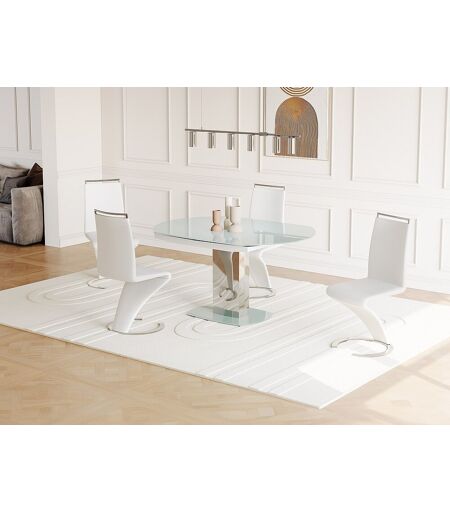 Vente-unique Mesa de jantar extensível TALICIA - Vidro temperado e metal - 6 a 8 lugares - Branco