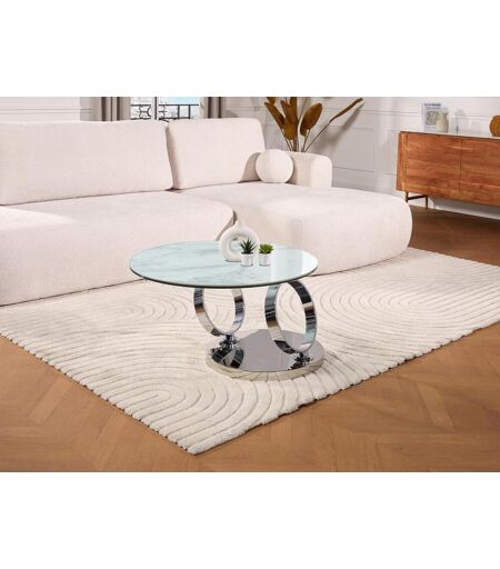 Vente-unique Mesa de centro com tampos giratórios em cerâmica e vidro temperado efeito mármore cor branco - JOLINE