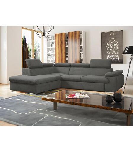 Vente-unique Sofá de canto modular em tecido com caixa de arrumação Cinzento escuro - Canto esquerdo -FABIEN