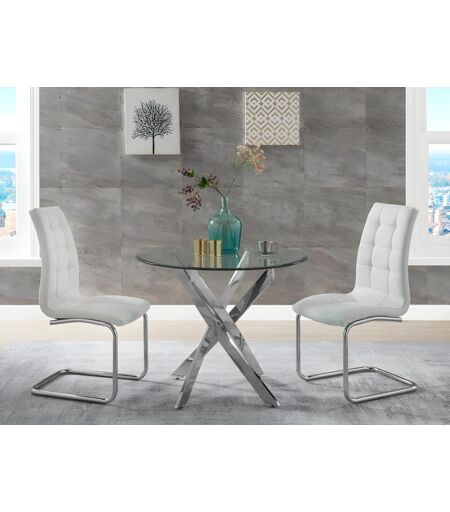 Mesa de jantar COSIMA - 4 lugares - Vidro temperado e aço cromado. Dimensões: C90 x L90 x A72,5cm. Reunam-se para refeições inesquecíveis em torno da mesa de jantar elegante COSIMA! ...