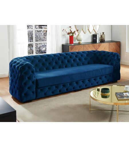 Mime-se com um grande clássico revisitado de veludo para seu total conforto! Sofá de 3 lugares chesterfield STANLEY. Dim.: 237 x 97 x 68 cm. Veludo azul meia-noite ...