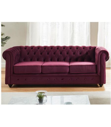 Vente-unique Sofá de 3 lugares CHESTERFIELD - Veludo roxo