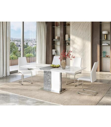 Conjunto de 4 cadeiras PAULINE de pele sintética com pés em metal cromado. Cor: branco. Dimensões: C44 x L56 x A97 cm. Altura do assento: 46 cm. O estilo contemporâneo chega à sua mesa com as cadeiras PAULINE! ...