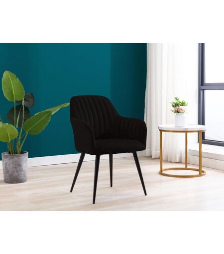 Vente-unique Conjunto de 2 cadeiras com apoios de braços em veludo e metal preto, cor preta - ELEANA