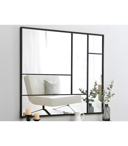 Vente-unique Espelho industrial desestruturado em metal de C. 130 x A. 150 cm cor preto - MALDONIA