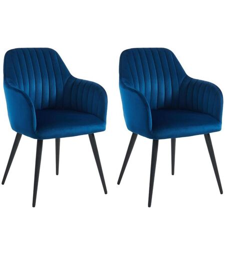 Vente-unique Conjunto de 2 cadeiras com apoios de braços em veludo e metal preto cor azul - ELEANA