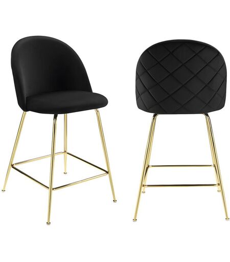 Vente-unique Conjunto de 2 bancos altos em veludo e metal dourado cor preto - MELBOURNE