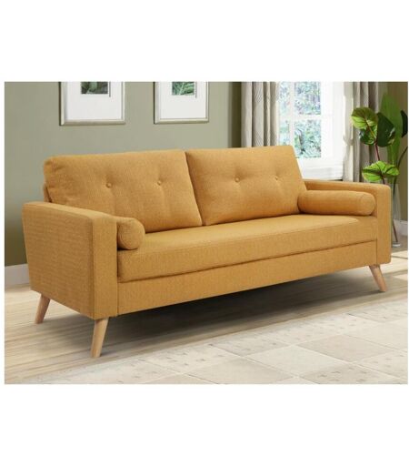 Vente-unique Sofá de 3 lugares em tecido efeito lã amarelo - TATUM