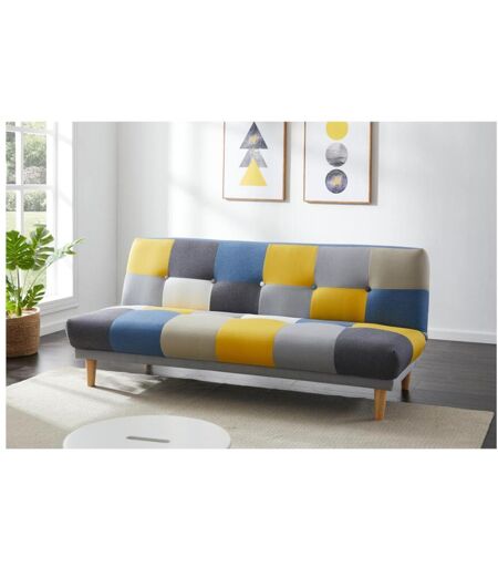 Vente-unique Sofá de 3 lugares clic-clac em tecido e cores patchwork cinza, azul e amarelo - MARDAG